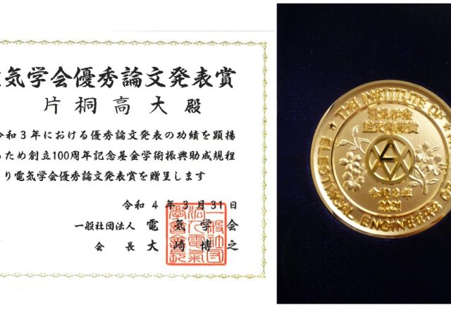 片桐 高大さん(山本真義研究室 D1、三菱電機株式会社)が電気学会優秀論文発表賞Aを受賞しました。
