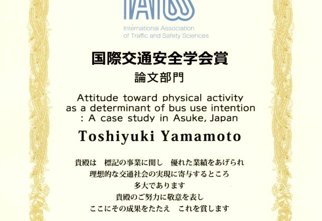Yen Tranさん(本学修了生)、山本 俊行 教授 らが 第43回国際交通安全学会賞(論文部門)を受賞