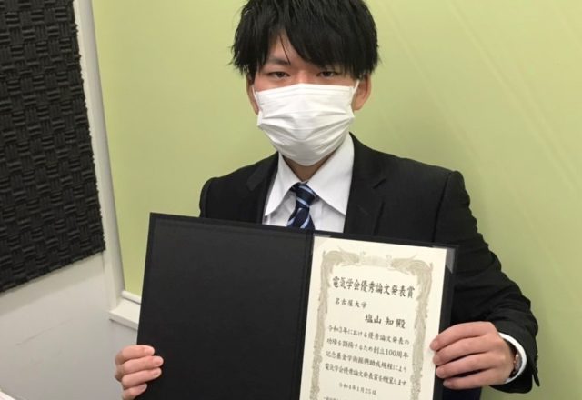 塩山 知さん(山本研究室 M1)が 電気学会優秀論文発表賞を受賞