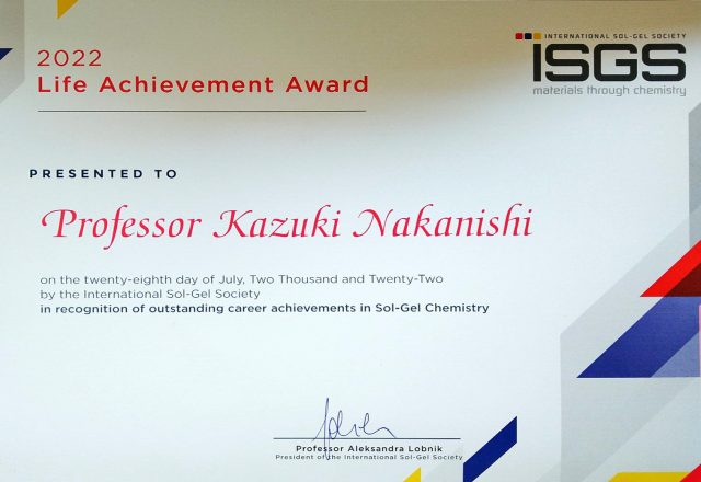 中西 和樹 教授がInternational Sol-Gel Society (ISGS) Lifetime Achievement Awardを受賞