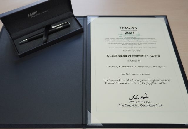 竹野 智喜さん(中西研究室)がICMaSS 2021でOutstanding Presentation Awardを受賞