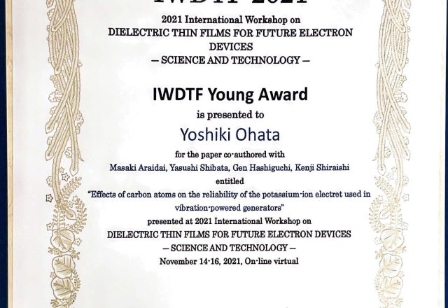 大畑 慶記さん(白石研究室 M1)がIWDTF Young Awardを受賞