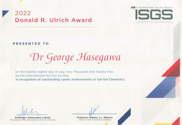 長谷川 丈二 特任准教授がInternational Sol-Gel Society (ISGS) D.R. Ulrich Awardを受賞