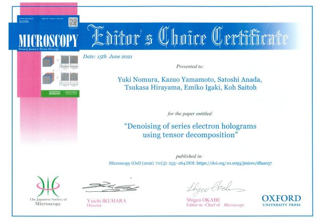 齋藤 晃 教授 他の論文が英文学術誌『Microscopy』でEditor’s Choiceに選出