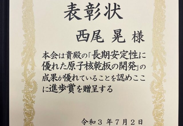西尾 晃 研究機関研究員が日本写真学会 進歩賞を受賞