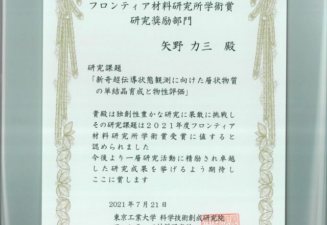 矢野 力三 助教がフロンティア材料研究所学術賞[研究奨励部門]を受賞