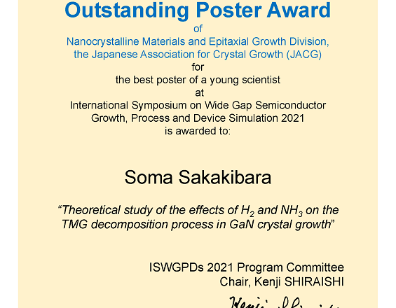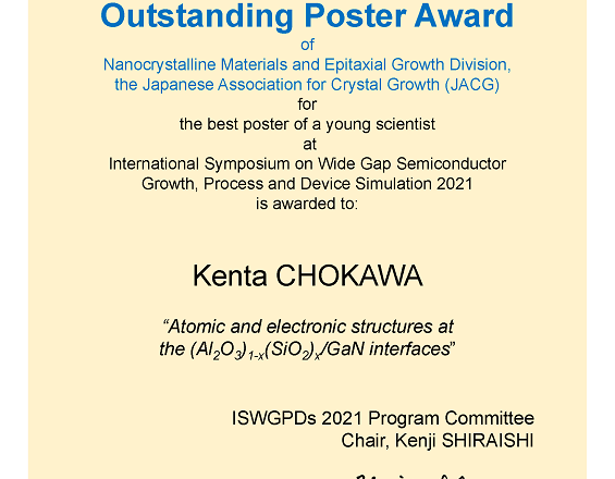 Outstanding Poster Award (Nanocrystalline Materials and Epitaxial Growth Division, the Japanese Association for Crystal Growth (JACG))