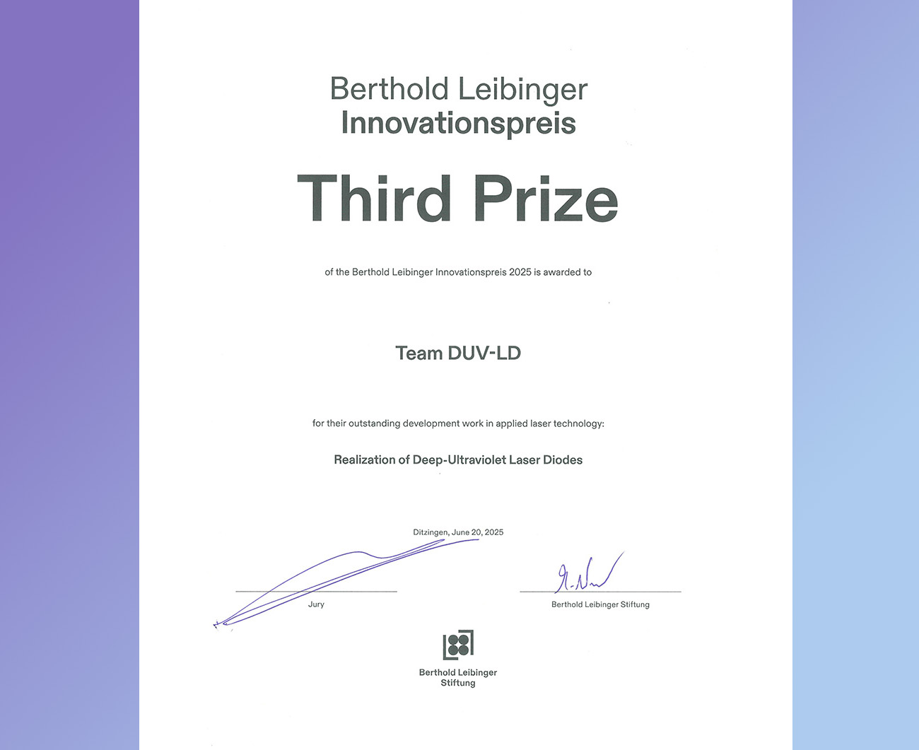 | Award | Berthold Leibinger Innovationspreis, Third Prize |