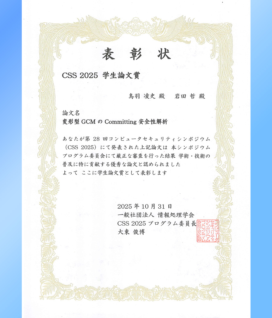 Computer Security Symposium(CSS) 2025 Tetsu Iwata Lab. |