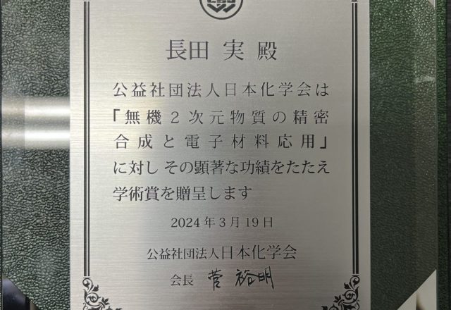 Prof. Minoru Osada received The Chemical Society of Japan Award for Creative Work for 2023.