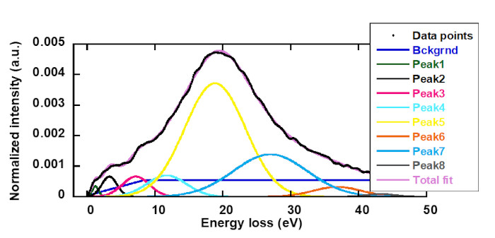 図2:あるポリマーから取得したLow-loss領域スペクトルのピークフィット例。