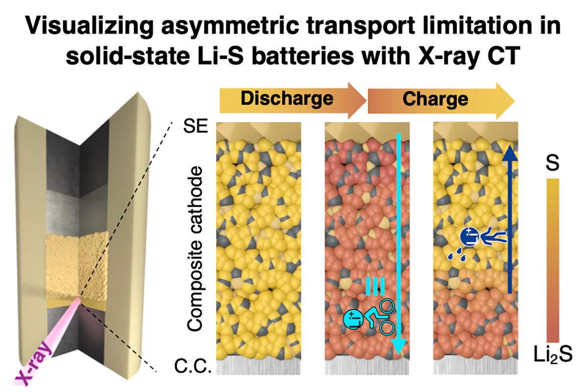論文タイトル: Unraveling Asymmetric Macroscopic Reaction Dynamics in Solid-State Li-S Batteries during Charge-Discharge Cycles: Visualizing Ionic Transport Limitations with Operando X-ray Computed Tomography