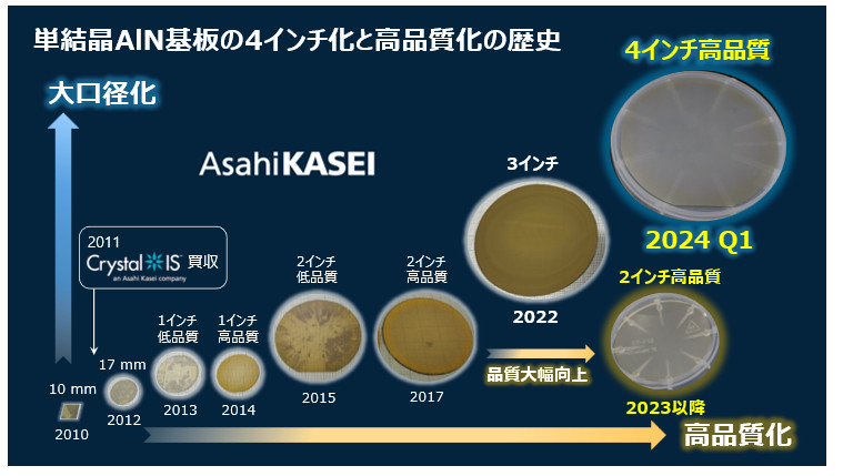 図5:旭化成とCrystal ISによる単結晶AlN基板開発の歴史。